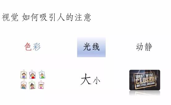 视觉:一般来说,购买者接触到的信息80%来自视觉,并且根据调研证实,购物者通过视觉效果会在9秒内做出购买决策。