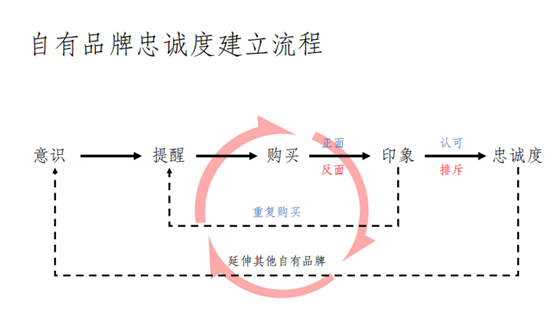 下午,邱老师指出,自有品牌忠诚度本质是价格的延伸,分享了自有品牌忠诚度建立流程,即意识→提醒→购买→印象→忠诚,重复购买产品后,对某个产品有了忠诚度后,购物者就会延伸购买其他自有品牌商品。